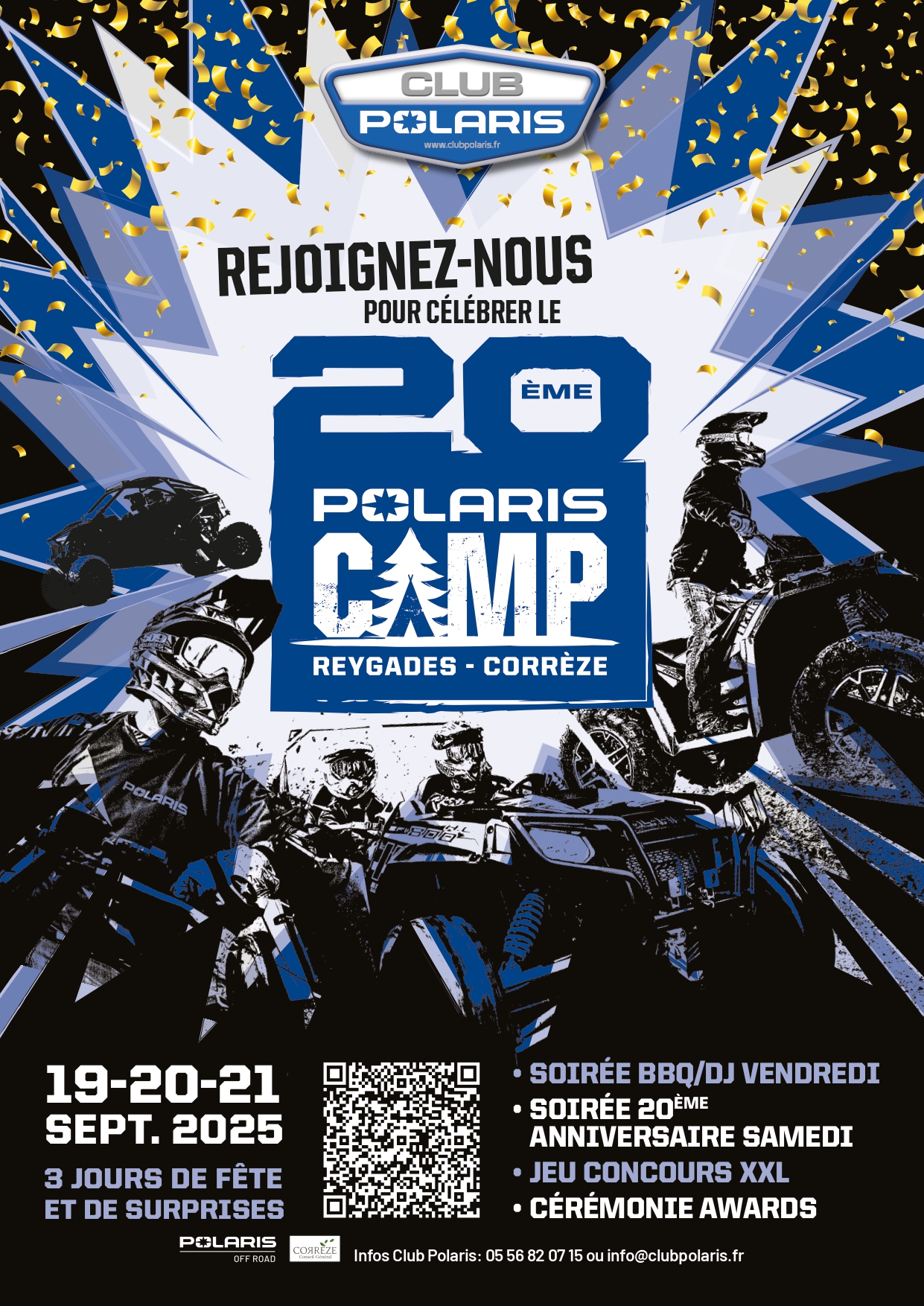 Au programme de ce Jubilé Exceptionnel : Randos Tout Terrain, Mixte & Touristique, trois pistes d’essai pour découvrir les nouveaux véhicules de la gamme Polaris, apéro de Région XXL ainsi qu’une grande soirée festive le samedi soir, avec tombola et animations pour célébrer cet anniversaire exceptionnel !