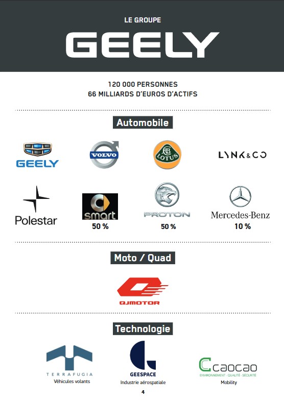 La marque appartenant au groupe Geely est propriétaire de plusieurs constructeurs automobiles de prestige dont Volvo et Lotus.